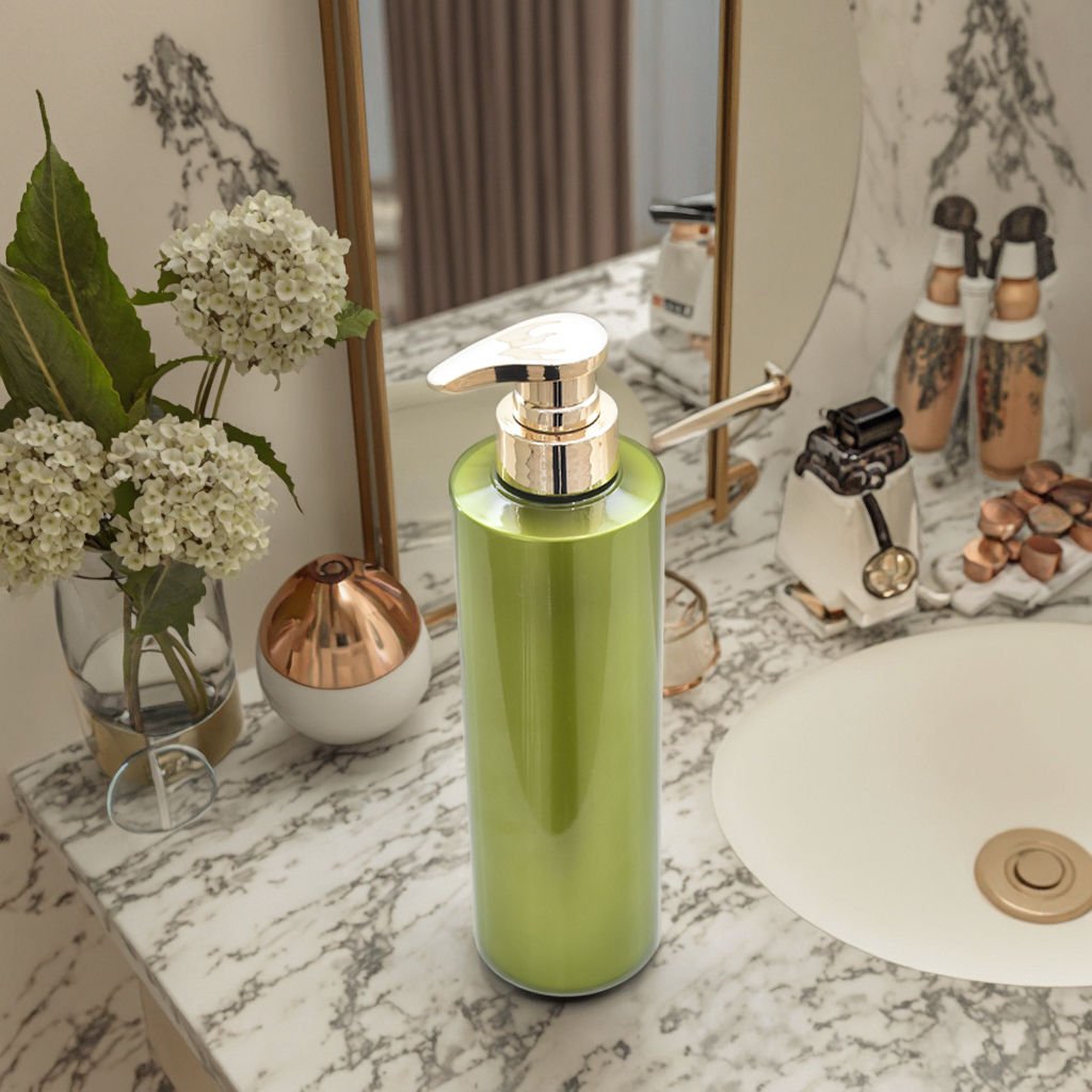 Botella de plástico verde para champú y acondicionador, 500 ml