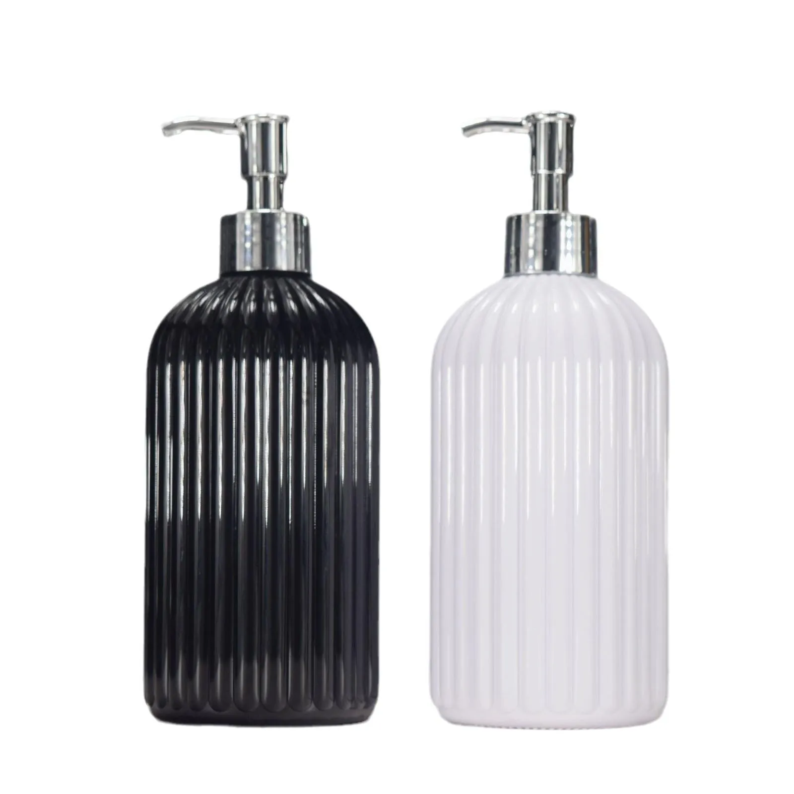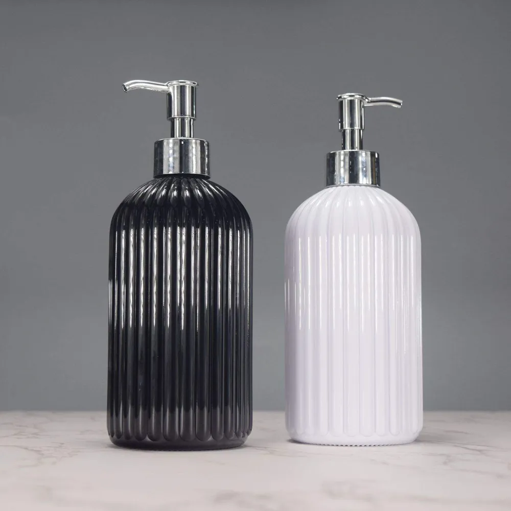 Boyu Packaging Botella cilíndrica clásica de vidrio a rayas para desinfectante de manos es una excelente opción para establecimientos de alta gama que desean ofrecer una experiencia de desinfección de manos de primera calidad y respetuosa con el medio ambiente. Las opciones de personalización, su diseño resistente y los plazos de producción rápidos lo convierten en una opción confiable para el sector hotelero.