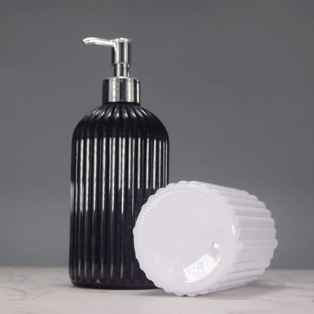 El Botella cilíndrica clásica de vidrio a rayas para desinfectante de manos es una solución premium y personalizable diseñada para hoteles de lujo, alojamientos en casas particulares y establecimientos de alta gama. Con una capacidad de 400 ml, esta botella ofrece un diseño sofisticado y resistente embalaje opción ideal para desinfectantes de manos. Su exclusivo diseño a rayas y su forma cilíndrica aportan un aspecto elegante a la vez que aprovechan al máximo el espacio. Está fabricado con vidrio de alta calidad y se puede personalizar con acabados pintados con aerosol, lo que lo hace perfecto para entornos profesionales.