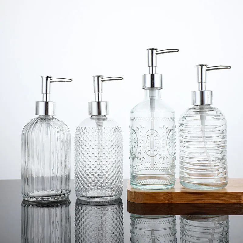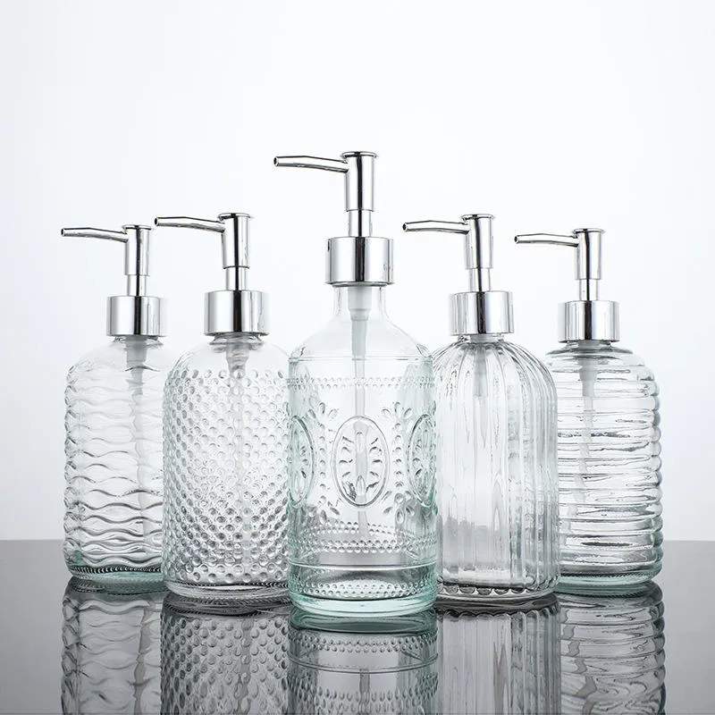 Vidrio transparente Botellas de desinfectante de manos con pulverizador de bomba para uso en hoteles y el hogar